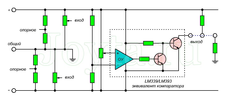Схема эквивалента компаратора напряжения с двухполярным источником питания