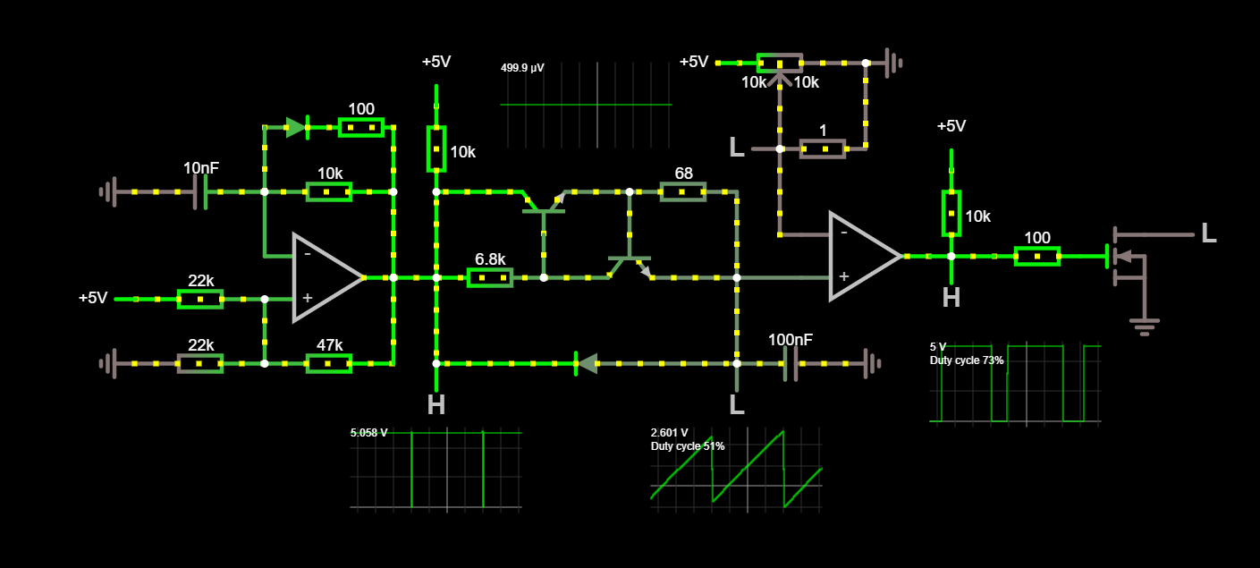 Добрый день! Недавно стал интересоваться цифровой схемотехникой и незаметно перешёл к аналоговой. А почему так произошло? Во время проектирования динамической индикации на дискретной логике, появилась идея реализовать ШИМ. Идея интересная, но опыта особенно не было. Поэтому сразу возникла идея поставить микроконтроллер. Но это не так интересно, особенно когда цель учится. И так спустя некоторое время я пришёл к тому, что можно реализовать ШИМ на компараторах.