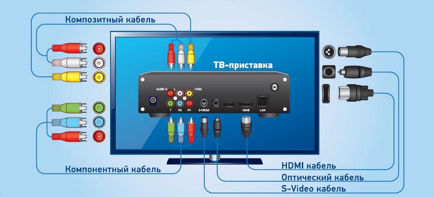 Когда кабель к телевизору подключается напрямую от приемника и подбирать его не сложно. Но у старых моделей отсутствует ТВ-тюнер (декодер) и для просмотра телевидения в цифре потребуется подключить цифровой ресивер. Еще нужно выбрать телевизионный кабель, необходимый для подсоединения приставки к телевизору.