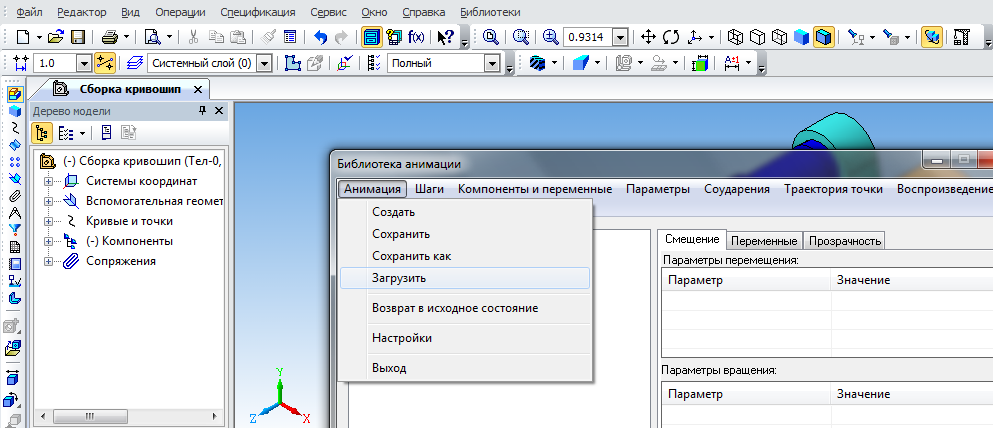 Чтобы воспроизвести сохраненную анимацию необходимо запустить библиотеку и нажать: Анимация — Загрузить.