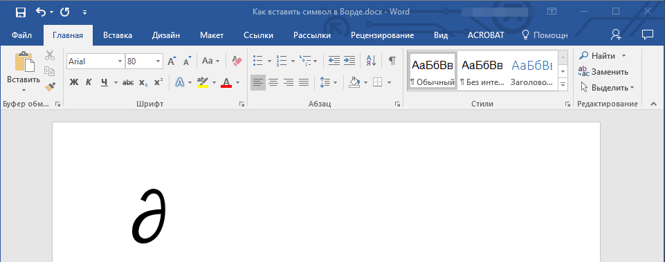 4. Символ будет добавлен в документ.