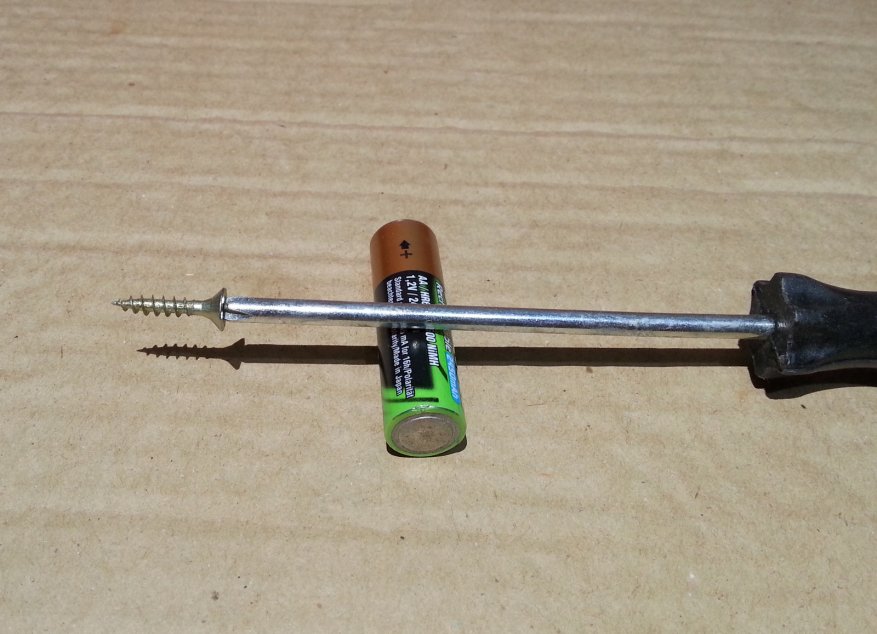 В качестве примера часовая отвертка. В обычном состоянии она не обладает магнитными свойствами: