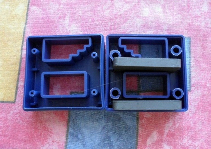 Намагничиватель поставляется в обычном почтовом пакете. По внешнему виду представляет собой призматический корпус из синего пластика с двумя отверстиями: