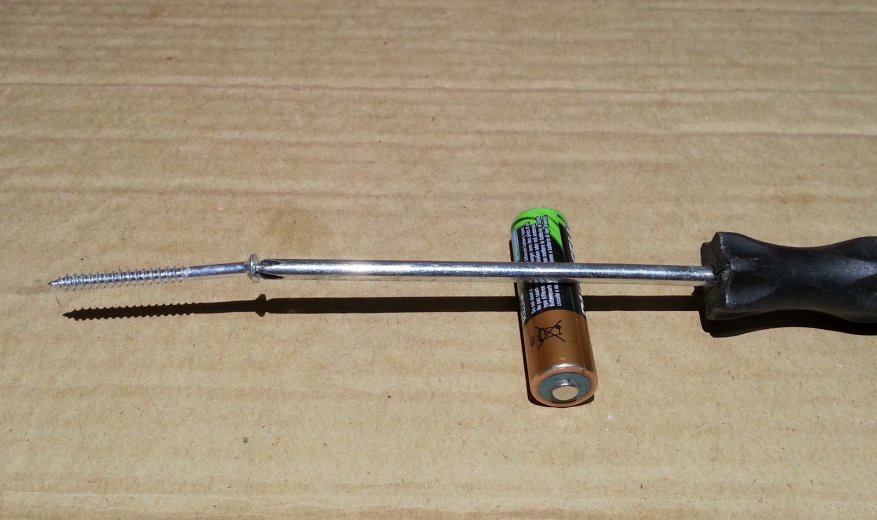 Может быть, кто-то уже знает это или учился на уроках физики или ремесел. Я собираюсь показать это тем, кто еще этого не знает. Нам нужен медный провод, изолента, батарейка АА, гвоздь, ножницы, в коробке есть штыри для тестирования.