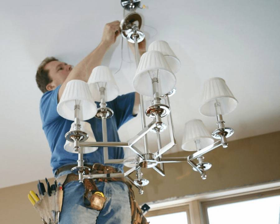 - Установка люстры как правило происходит в неудобной позе (например, на стремянке), и в одной руке будет светильник, а другой рукой вы будете его крепить. Поэтому рекомендуем убедиться, что все элементы конструкции соответствуют друг другу и надежно закреплены.