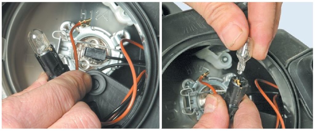 Что же касается разъёма лампы габаритов, то он располагается ближе к нижнему углу фару. Так что, вам потребуется извлечь патрон. Делается это посредством поворота патрона против часовой стрелки. Теперь вам будет доступна лампа, заменить которую очень просто.