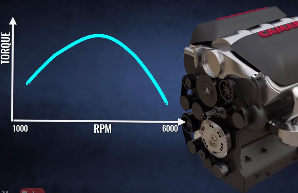 График зависимости крутящего момента (Н⋅м) от оборотов двигателя внутреннего сгорания (ДВС) выглядит примерно вот так: