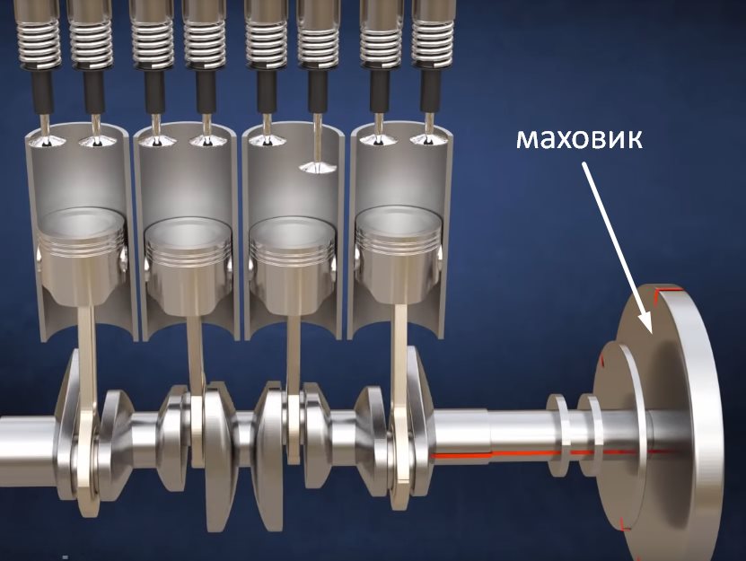 Еще один минус ДВС в том, что выдаваемая им мощность очень неравномерна, поэтому надо использовать маховик.