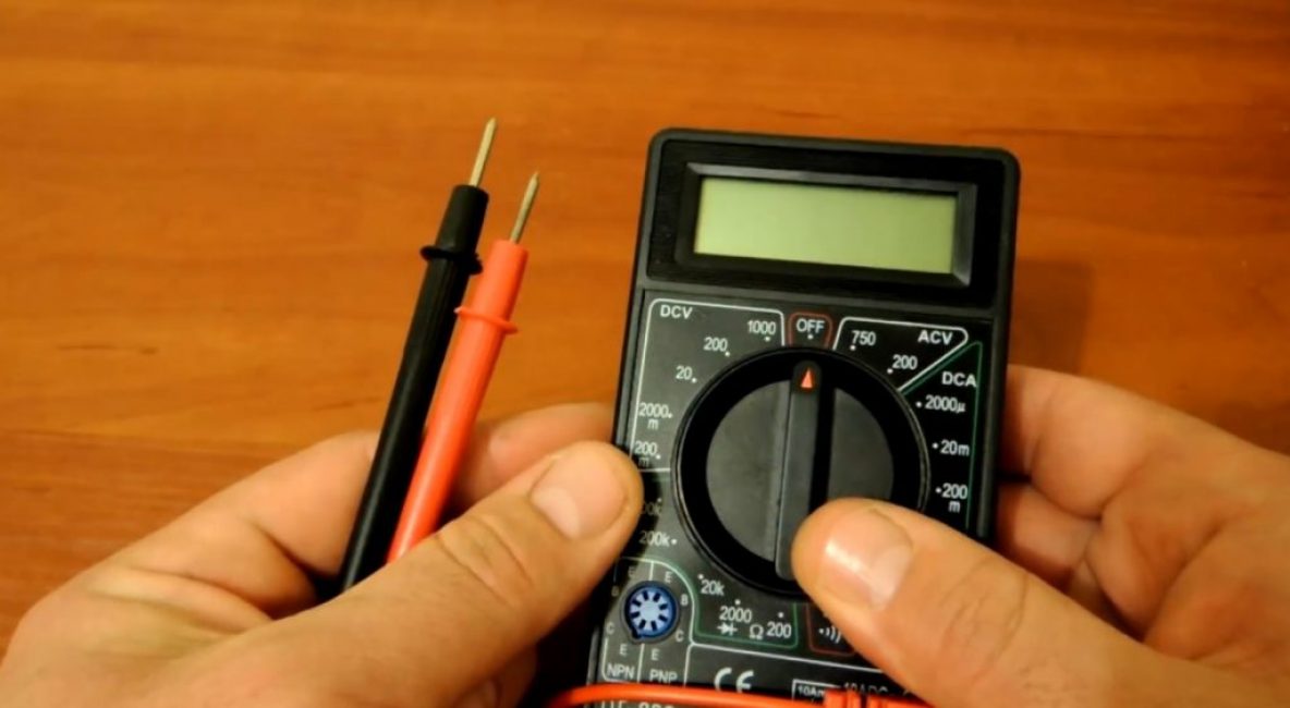 - Переключают мультиметр на использование режима, соответствующего характеру тока (переменный или постоянный).