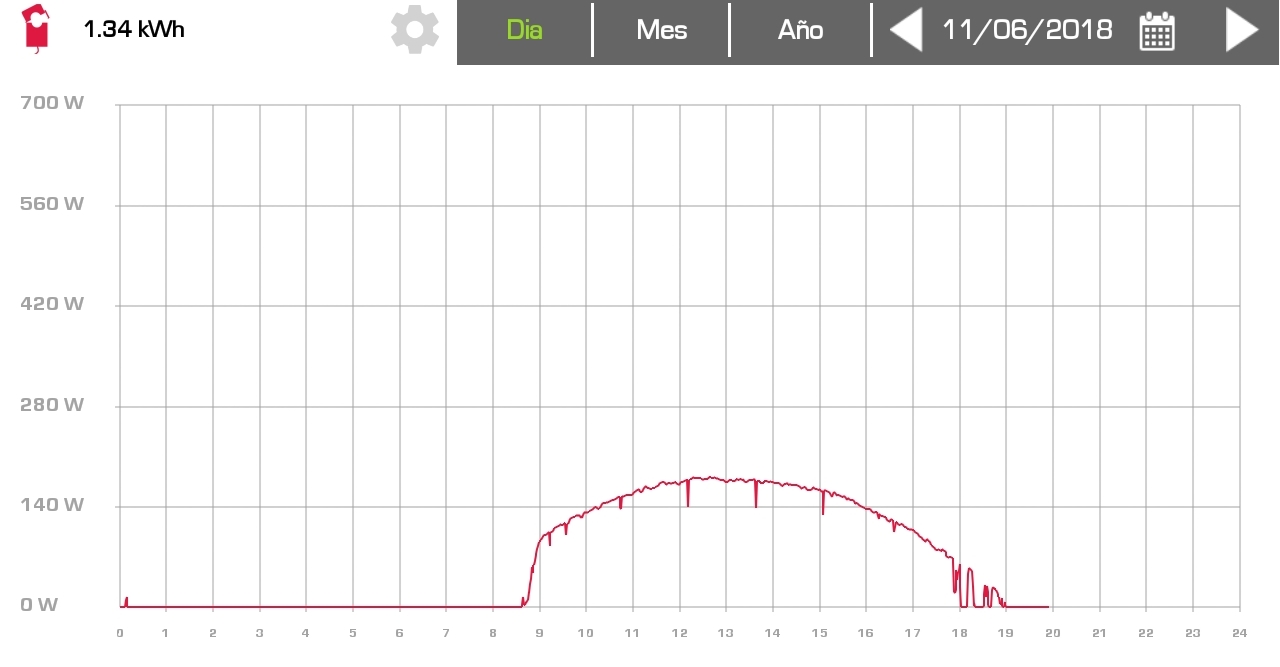 А вот так выглядит выработка солнечной батареи по часам в течение дня: