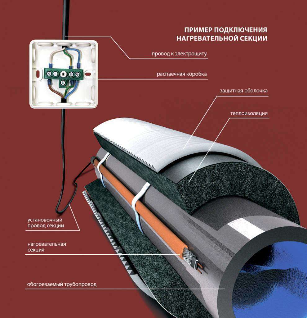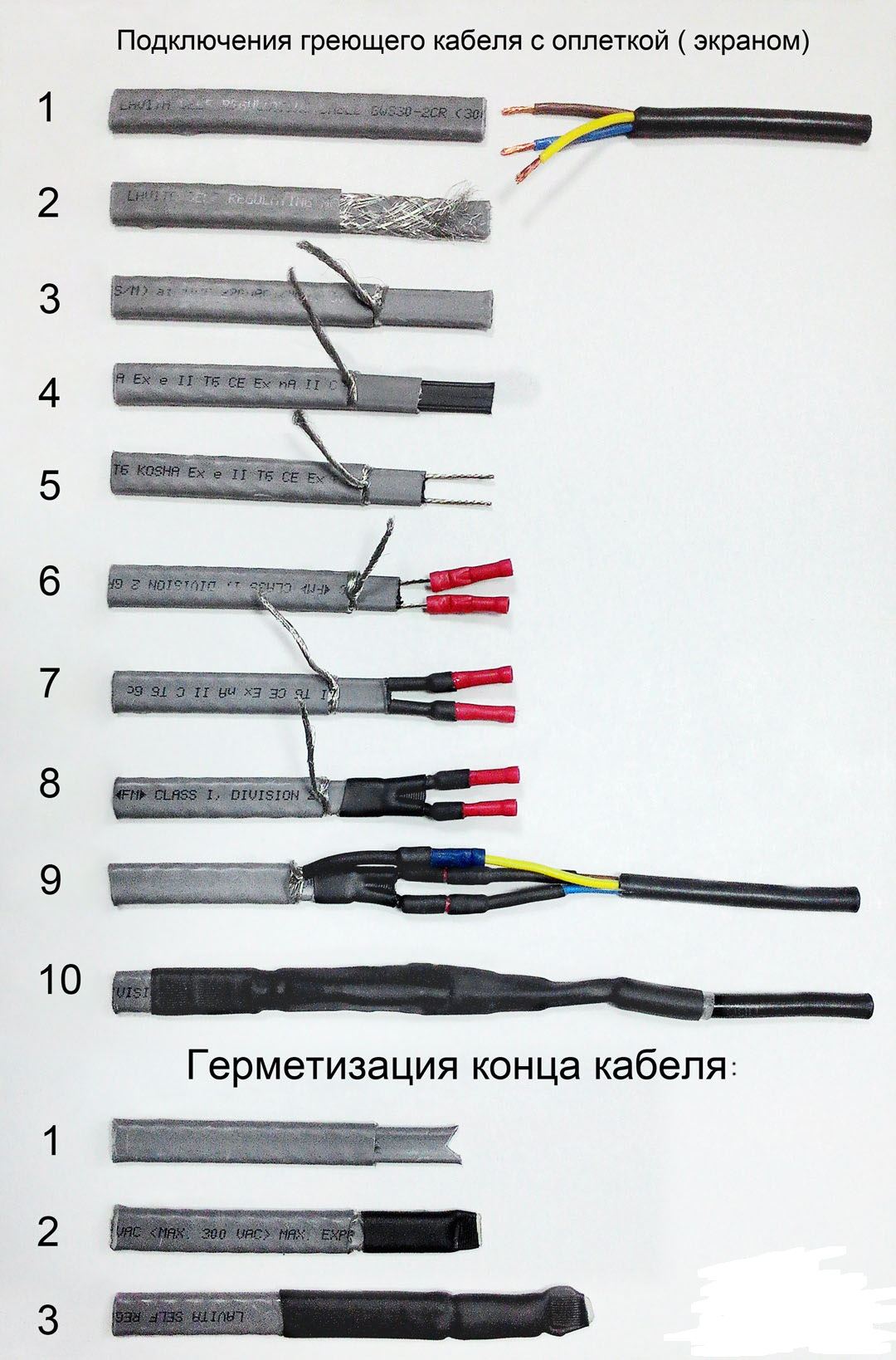 Далее рассмотрим, как правильно соединить и подключить греющий кабель, предназначенный для обогрева трубопровода изнутри. Сам процесс на многих этапах практически идентичен рассмотренному выше.