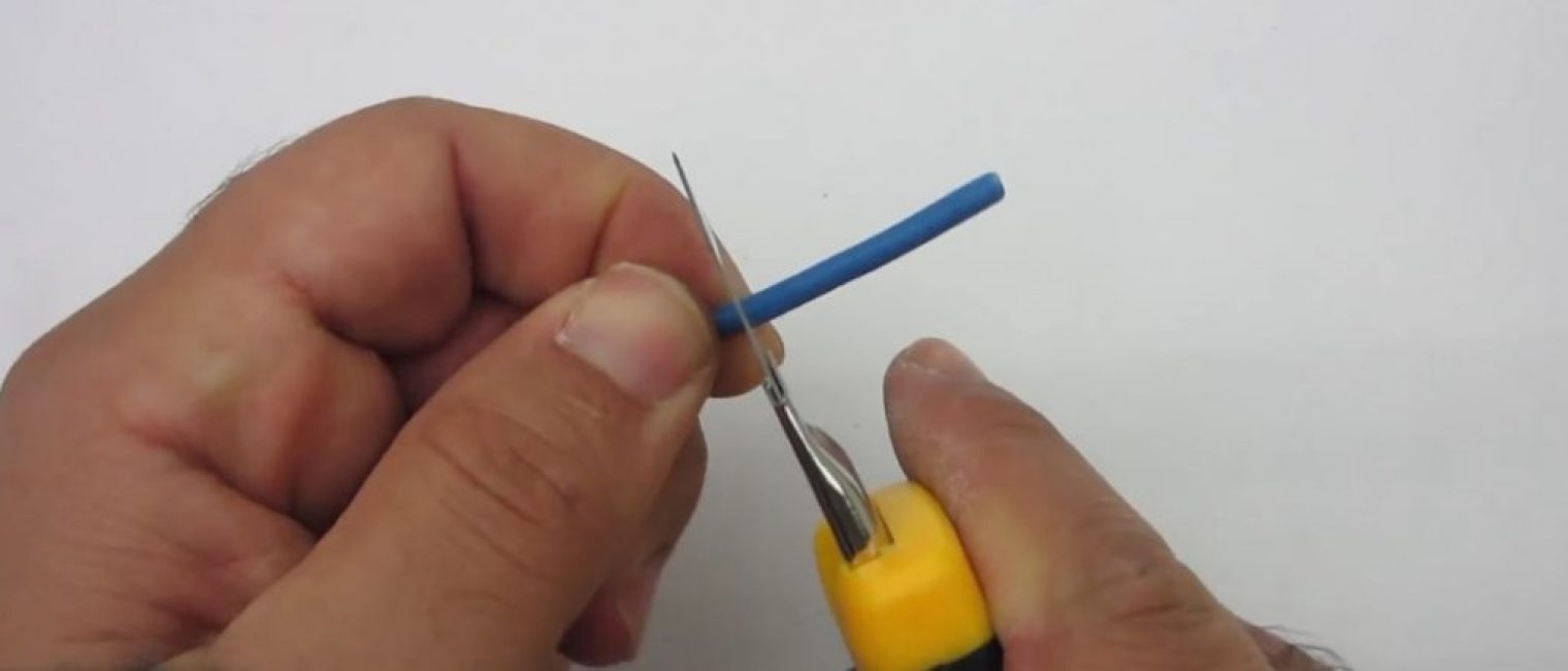 Перед скручиванием с токоведущих жил необходимо снять слой защитной изоляции. Обычно эта операция производится при помощи ножа. Во время работы нужно стараться не повредить лезвием инструмента металлический токовод. В противном случае он способен надломиться в ослабленном месте. В особенности это касается мягких многопроволочных жил кабелей.