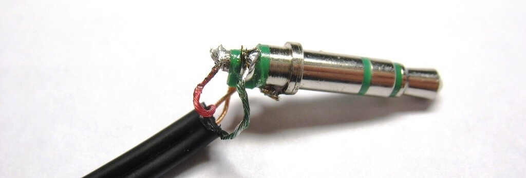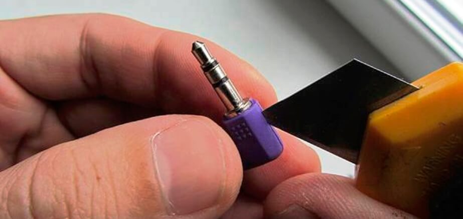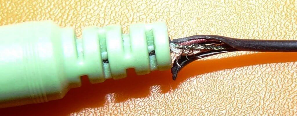 При отсутствии сигнала или в случае невозможности разбора наушника выполняют надрез изоляции. Перелом жил чаще всего случается возле штекера, динамика или на раздвоении провода. Чтобы проверить штекер снимают 5 мм изоляции кабеля на расстоянии 5 см от наушника