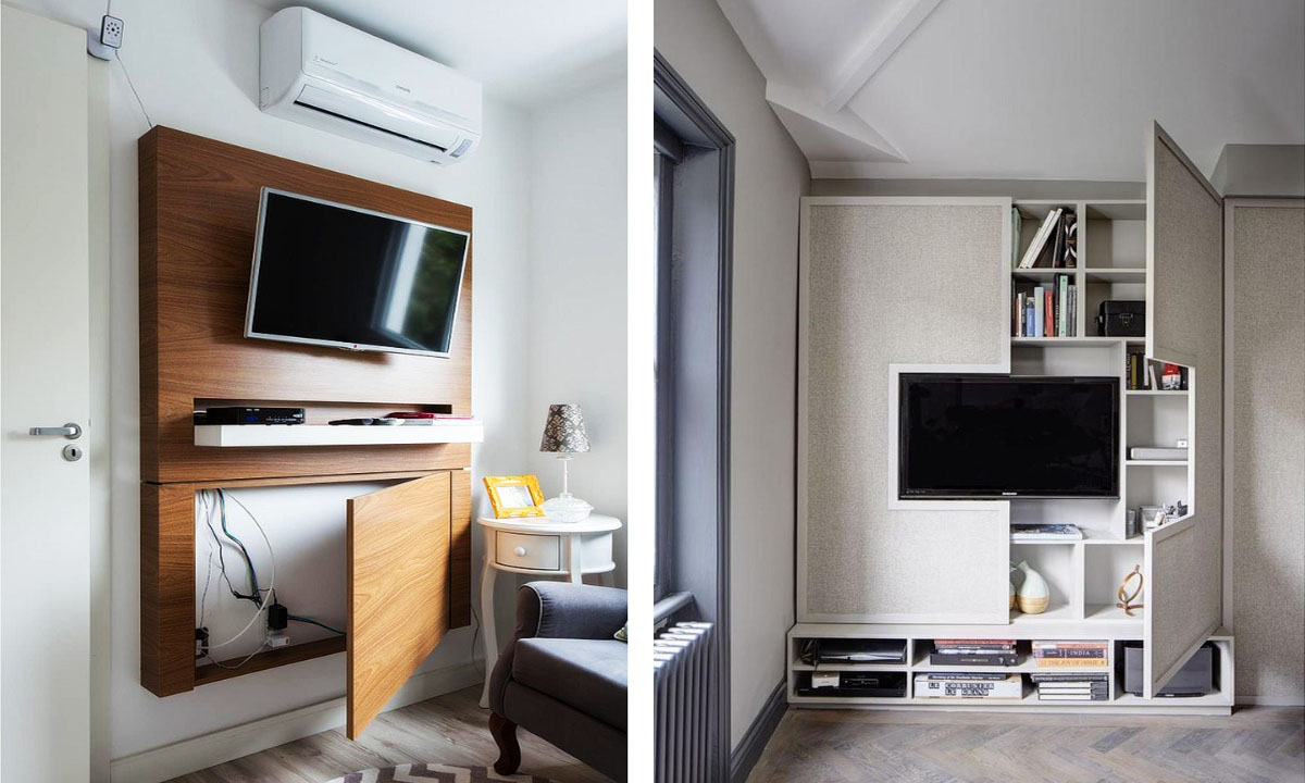С телевизором ситуация обстоит немного сложней, ведь провода в этом случае всегда на виду. Но, вот следующие варианты решения и такой ситуации.