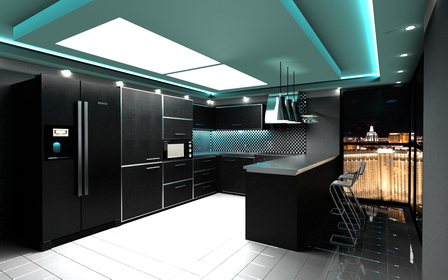 Светодиодные панели можно использовать и в домашних интерьерах в стиле хай-тек.