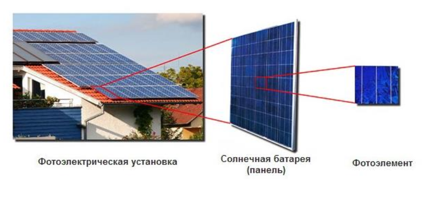 Солнечная батарея представляет собой многочисленные фотоэлектрические преобразователи, соединенных между собой в единую систему. Они превращают солнечную энергию в электрический ток.
