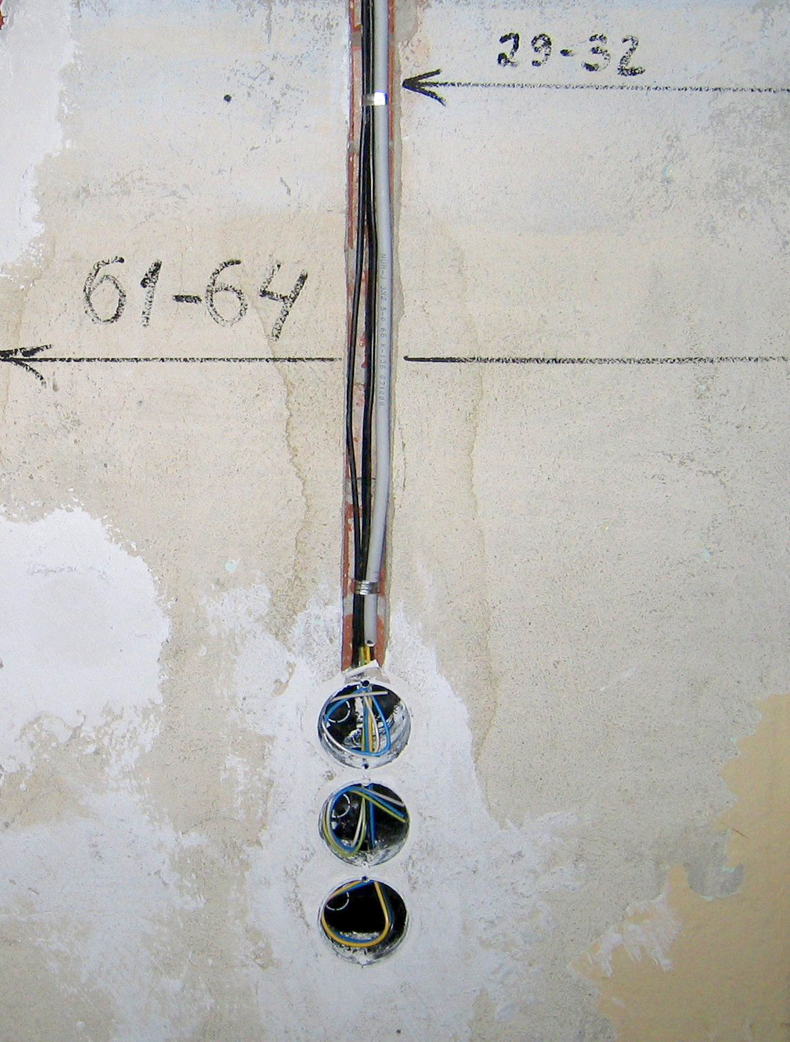 В этом случае вся проводка будет проведена, как скрытая. То есть в теле бетонной или кирпичной стены делаются штробы, куда закладывается электрический кабель. Его концы выводятся на определенном уровне в необходимых местах. После чего канавки штукатурятся.