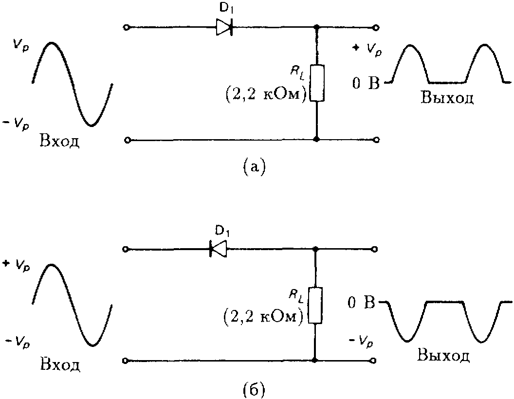 При отрицательных полупериодах напряжения, поступающих на анод диода диод закрывается, и во всей цепи будет протекать незначительный обратный ток диода (Iобр). Здесь, диод как бы отсекает отрицательную полуволну переменного тока (на правом графике такая полуволна показана синей пунктирной линией).