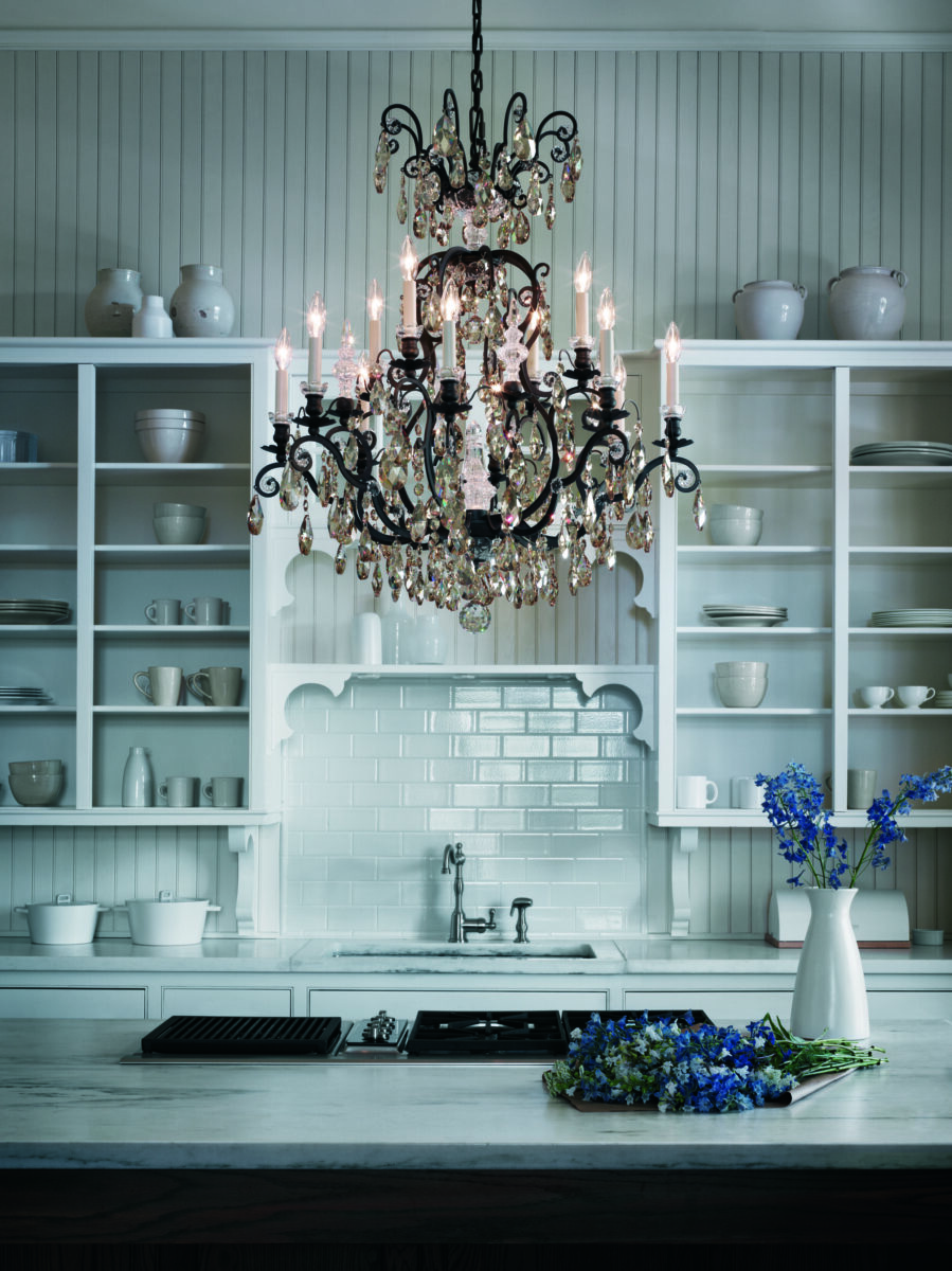 Изящная люстра из хрусталя подойдет для кухни в классическом стиле.
