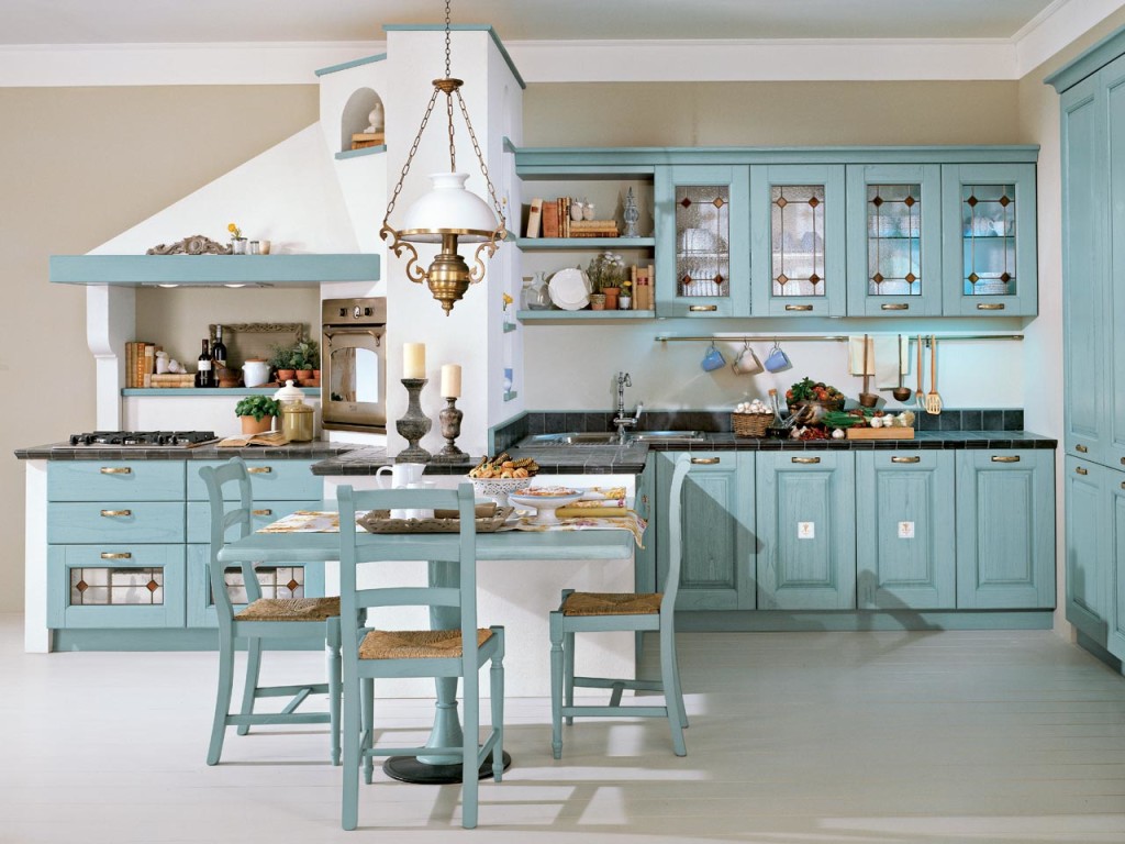 - Голубого или синего цвета люстра придаст дополнительной свежести и теплоты кухне. Такие цвета хорошо сочетаются с белым, серым, коричневым цветом и их оттенками.