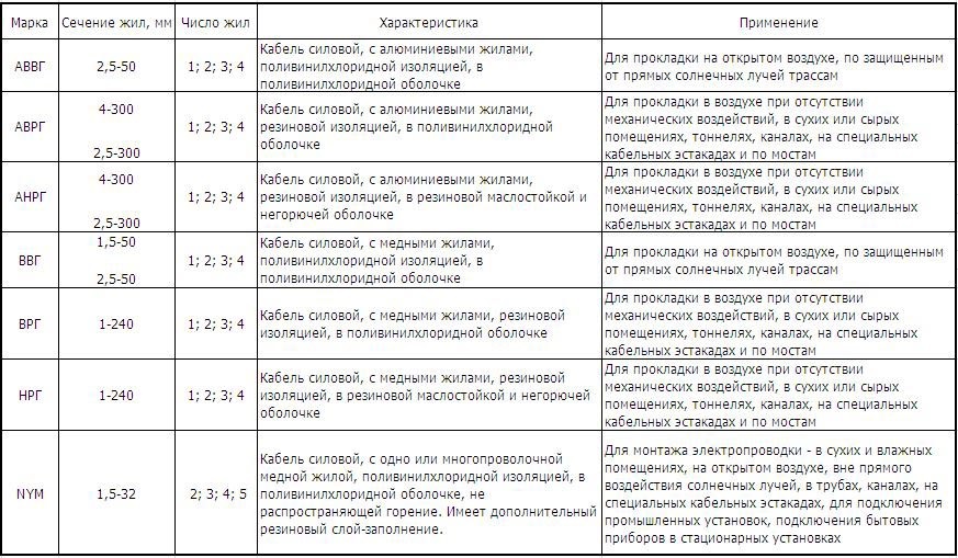 Что касается букв, то первая буква – тип материала, используемого для верхней оплетки изоляции, вторая – тип провода, третья – тип материала для внутренней изоляции жил.