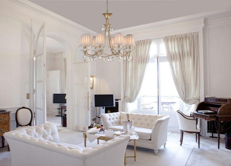 Белая люстра в интерьере является классикой выбора при сочетании цветов, так как белый сочетается со всеми оттенками и подойдет к любому интерьеру