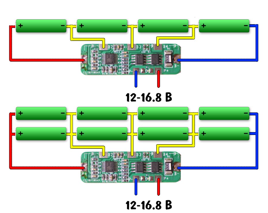 В основном батареи собирают последовательно-параллельно, а сами сборки служат для промежуточного или резервного хранения электроэнергии Известны и повсеместно применяются 3 варианта соединения отдельных аккумуляторов в батарею: последовательное, параллельное и смешанное или комбинированное. Последовательное соединение: При последовательном соединении элементов складываются и величины их внутренних сопротивлений. Тогда она будет выглядеть вот так согласитесь, проще некуда: пара резисторов и один кондер : Один из вариантов печатной платы доступен по этой ссылке.