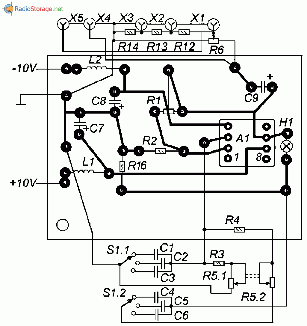 Рис. 2. печатная плата для низкочастотного генератора сигналов.