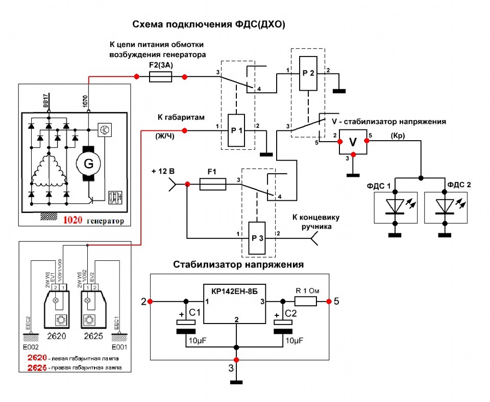 Схема подключения стабилизатора для дхо также проста, как и схема его изготовления и легко находится на любом сайте или форуме автолюбителей.
