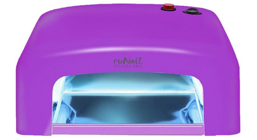 УФ 54 Вт ruNail. Удобная и недорогая модель, пригодная для применения дома и в салоне. Оснащена зеркалами, расположенными на внутренней стороне, вентилятором, а также таймером, установить который можно на время от пяти секунд до девяти минут. Пригодна для просушки гель-лаков и геля.