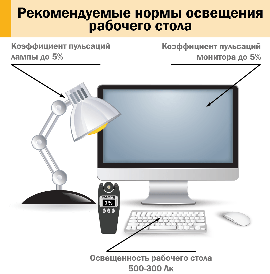 Причём важна не только качественная подсветка рабочего места – общая освещённость должна соответствовать ей по интенсивности, иначе глаза оператора будут постоянно перенапрягаться при переводе взгляда на более затемнённые участки. Такие резкие перепады провоцируют ускоренное утомление, человек становится вялым и невнимательным, продуктивность труда ощутимо снижается.