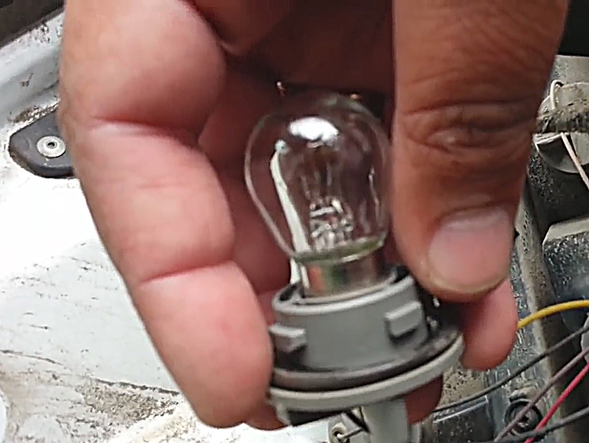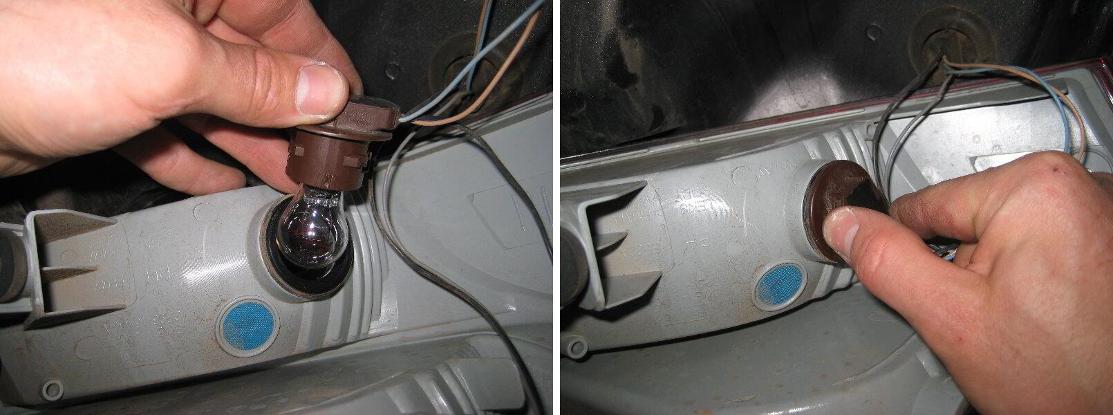 Лампочку стоп-сигнала можно снять, слегка утопив ее и повернув против часовой стрелки. Снимаем и на ее место устанавливаем новую.