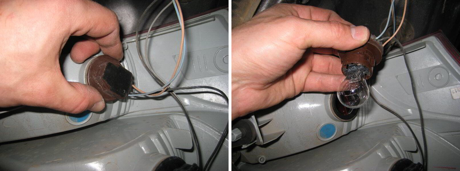 При замене лампочек проверяется состояние контактов и внутренней полости фонарей