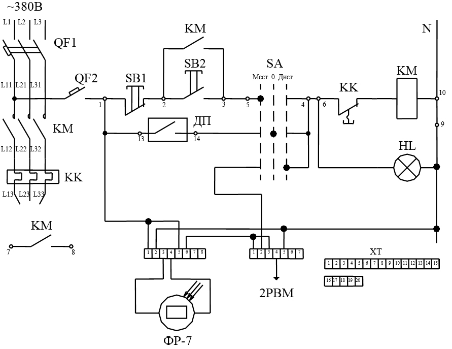 - Коммутационная аппаратура: выключатель, контактор с нормально открытыми контактами, автоматы защиты, переключатель.