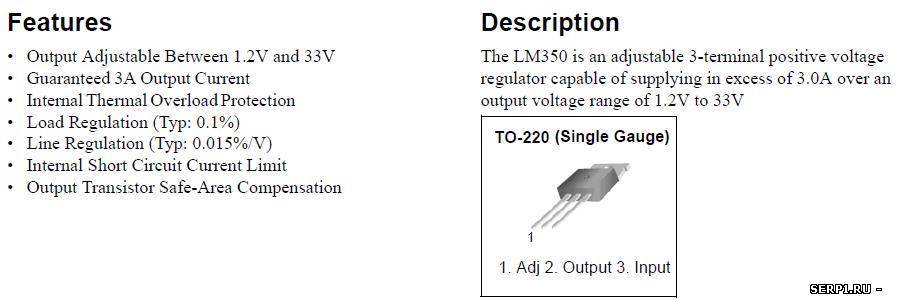Скачать datasheet LM350 (85,5 KiB, скачано: 239)