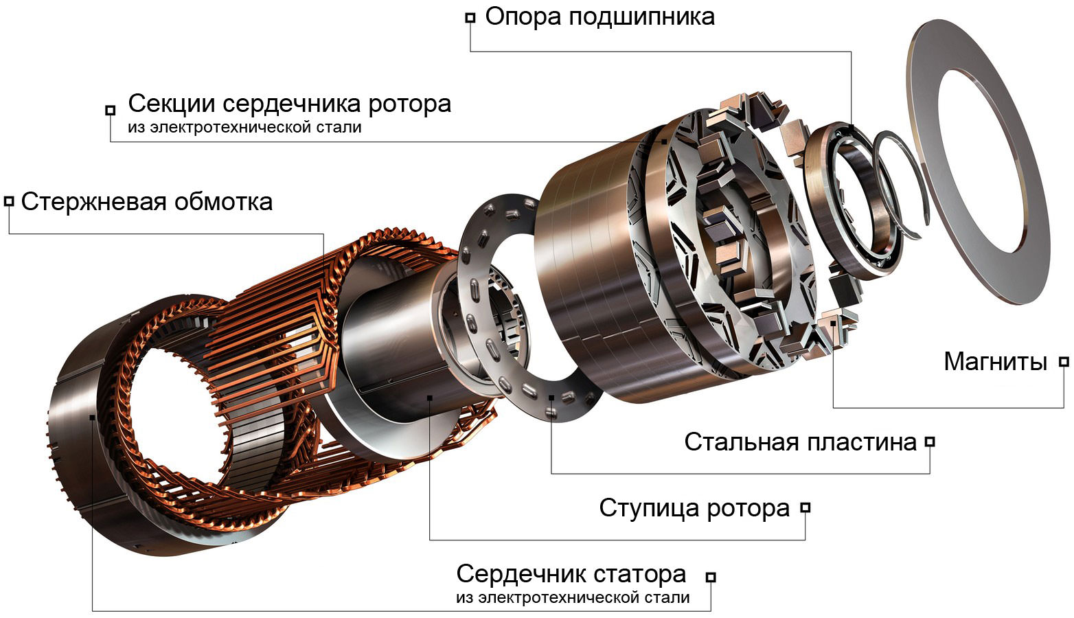 Электродвигатель на постоянных магнитах не сильно отличается по виду конструкции.