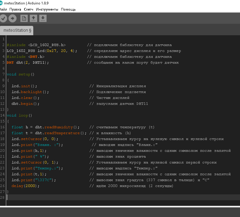 #include <LCD_1602_RUS.h> // подключаем библиотеку для датчика