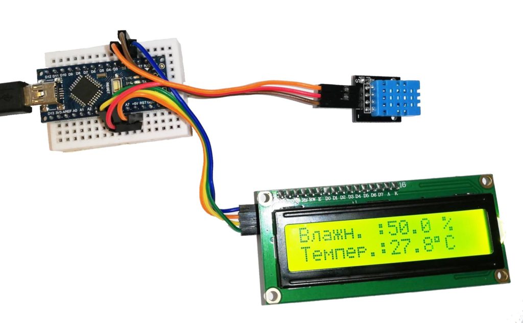 Сборка метеостанции с дисплеем 1602 и DHT11