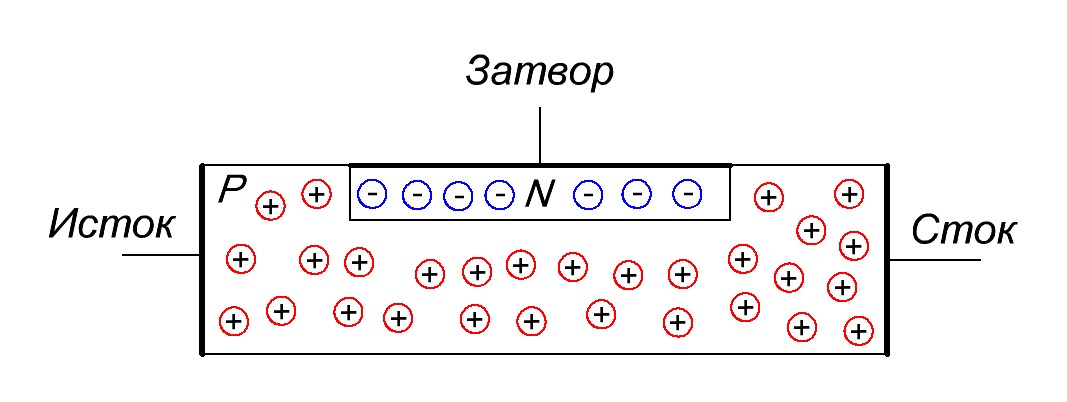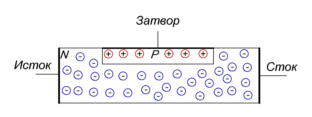 При подаче запирающего напряжения на p-n-переход Uзи на границах канала возникает равномерный слой, обедненный носителями заряда и обладающий высоким удельным сопротивлением. Это приводит к уменьшению проводящей ширины канала.