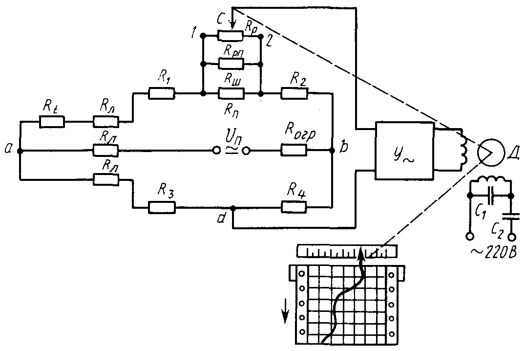 Рис. 2. Схема автоматического самописного мостика постоянного тока.