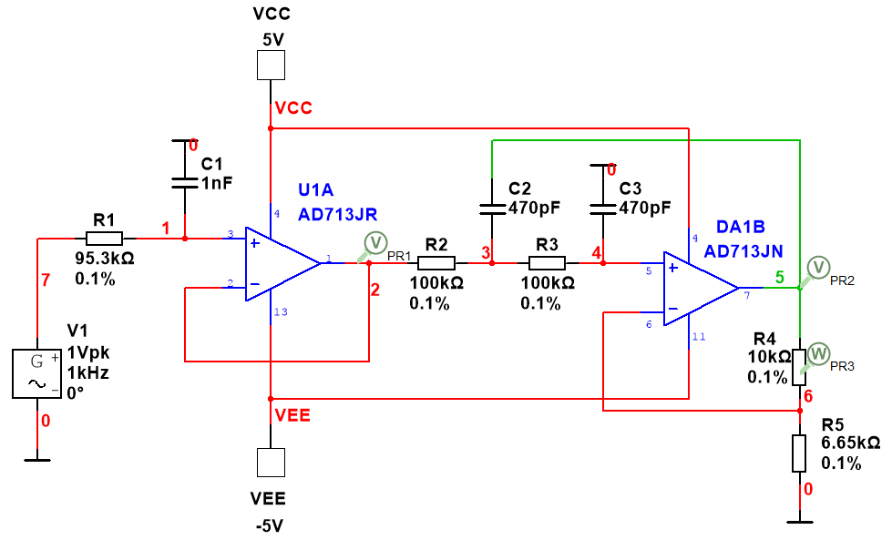 | Рис. 6. | Схема ФНЧ для анализа функции «Active Analysis Mode». |