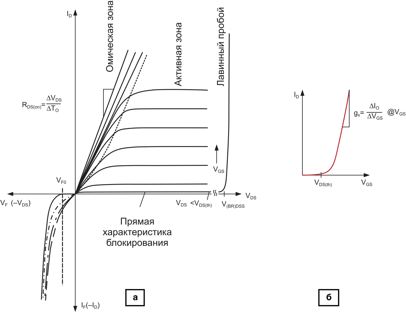 На рис. 11 показаны выходные характеристики MOSFET, имеющего внутренний инверсный диод, и переходная характеристика диода.