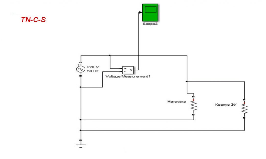 Схема TN-C-S для заземления использует линию Ноль, как это показано на рисунке ниже. В данном случае на корпусе потребителя напряжения нет.