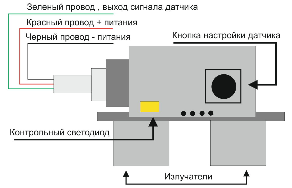 - Сама система состоит из двух взаимосвязанных устройств – датчика, излучающего определенный световой луч, и сенсора на который этот луч направлен.