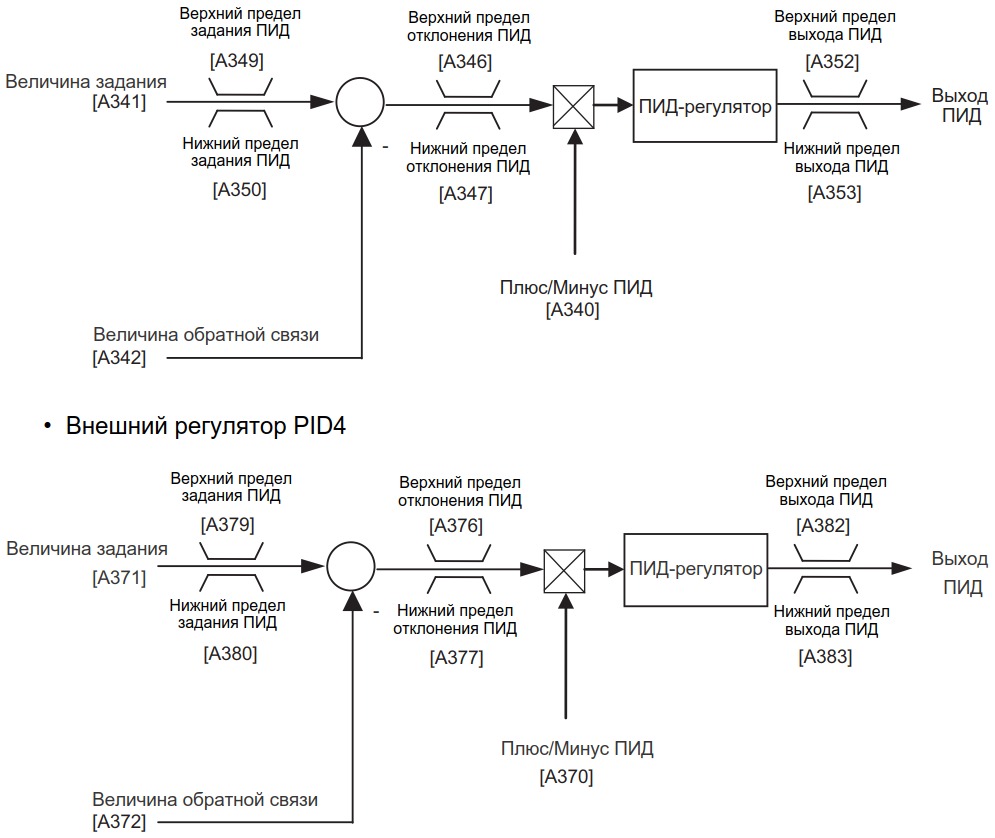 Схема двух внешних PID-регуляторов ПЧ Toshiba