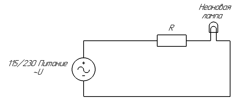 Разница в простых принципиальных схемах сигнальных неоновых ламп и led-ламп показана ниже