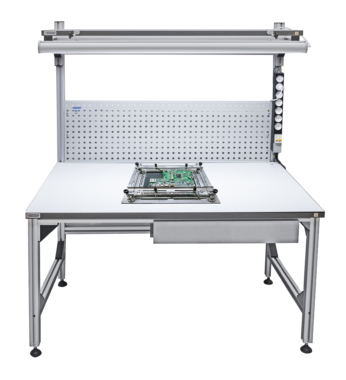 - Конструкция держателя платы, размещенная на столе.