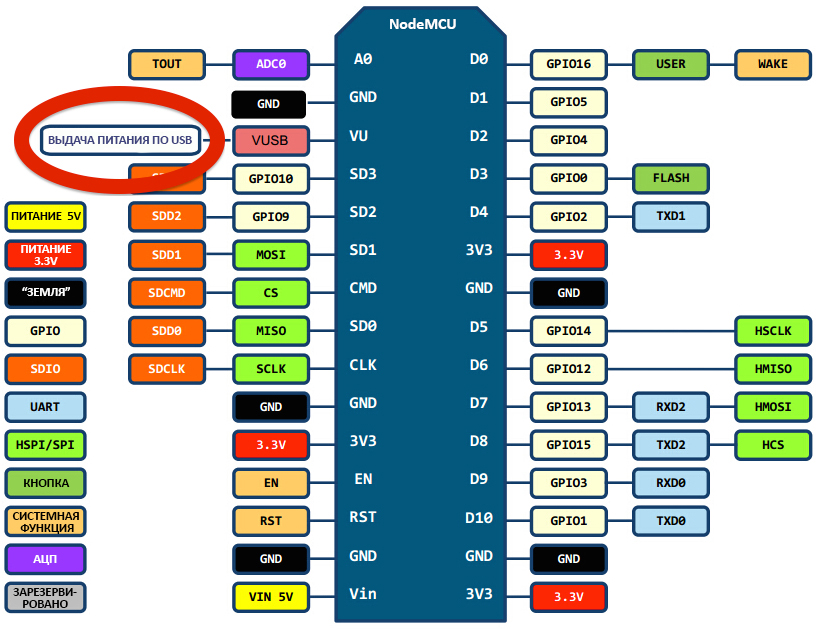 Рисунок 6 – Распиновка ESP8266 NodeMCU
