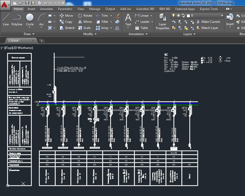 Работа по составлению однолинейной схемы распределительного щита в программе «AutoCAD Electrician»