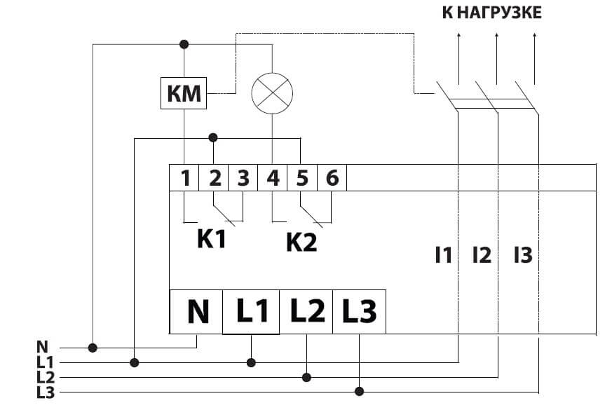 Устройство включает в свой состав минимум одно реле с перекидным контактом. Через него происходит либо управление магнитным пускателем, либо подключенной нагрузкой напрямую. Прямое управление возможно, если ток нагрузки не превышает величины, указанной в паспорте устройства (максимальный ток контактной системы).